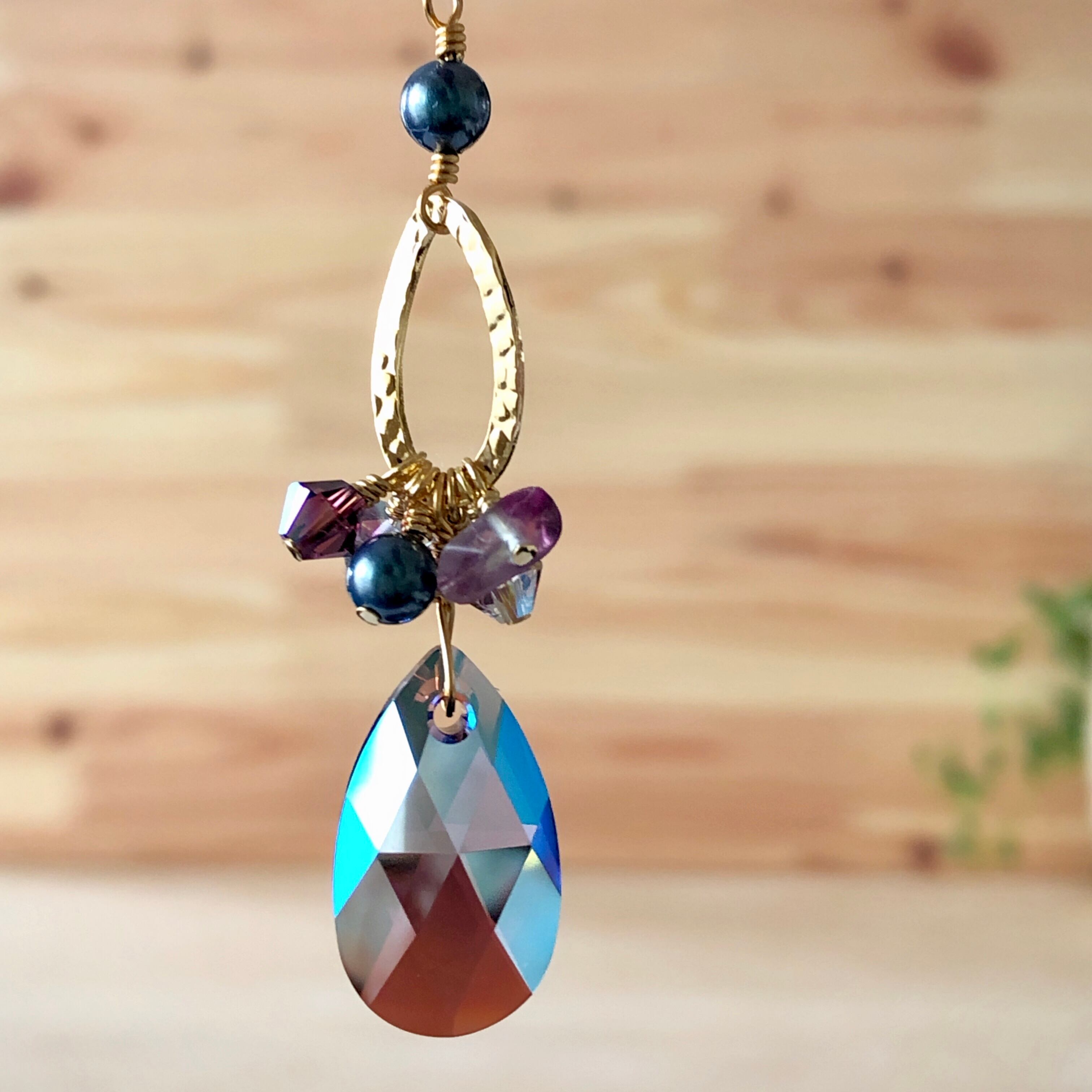 アメジストのように深く美しい紫にオーロラの艶めきが美しいスワロフスキークリスタルガラスアメジストシマー2,2cmのミニサンキャッチャーです。
