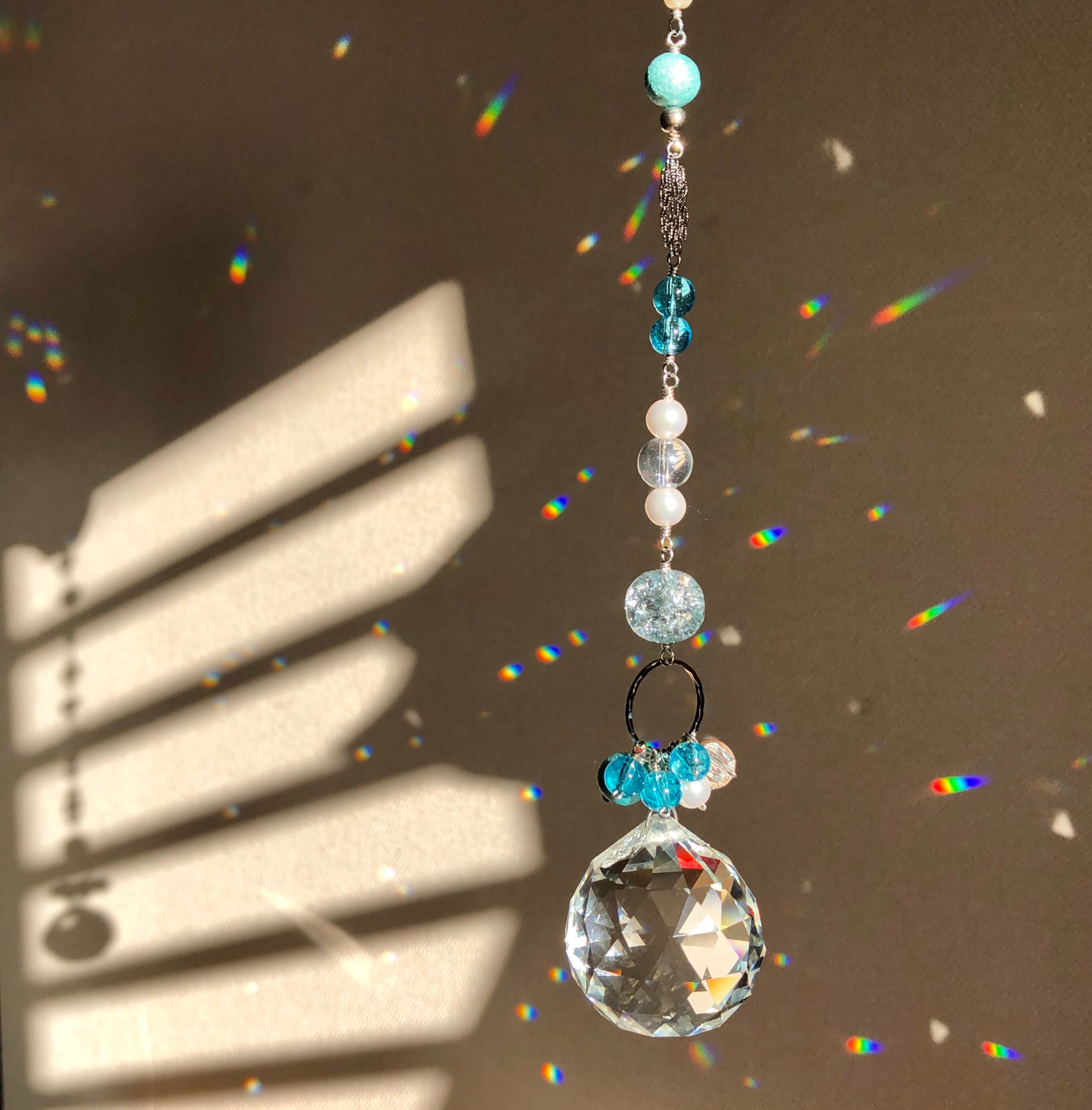 Soldoutー自由ーターコイズブルーのつぶつぶ弾けるサンキャッチャー