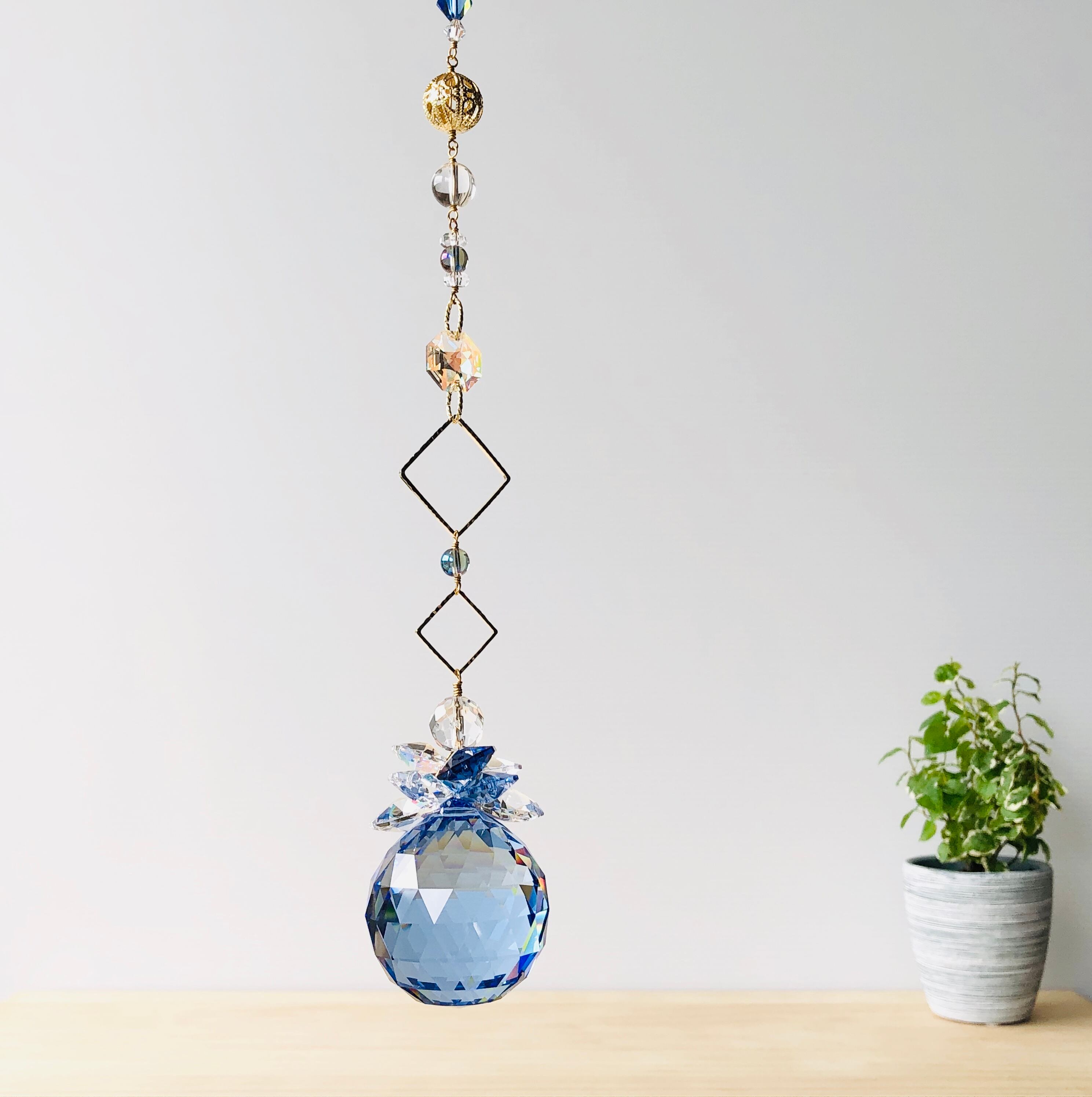 コスモオーラとスワロフスキークリスタルガラスミディアムサファイア4cmのサンキャッチャーです。