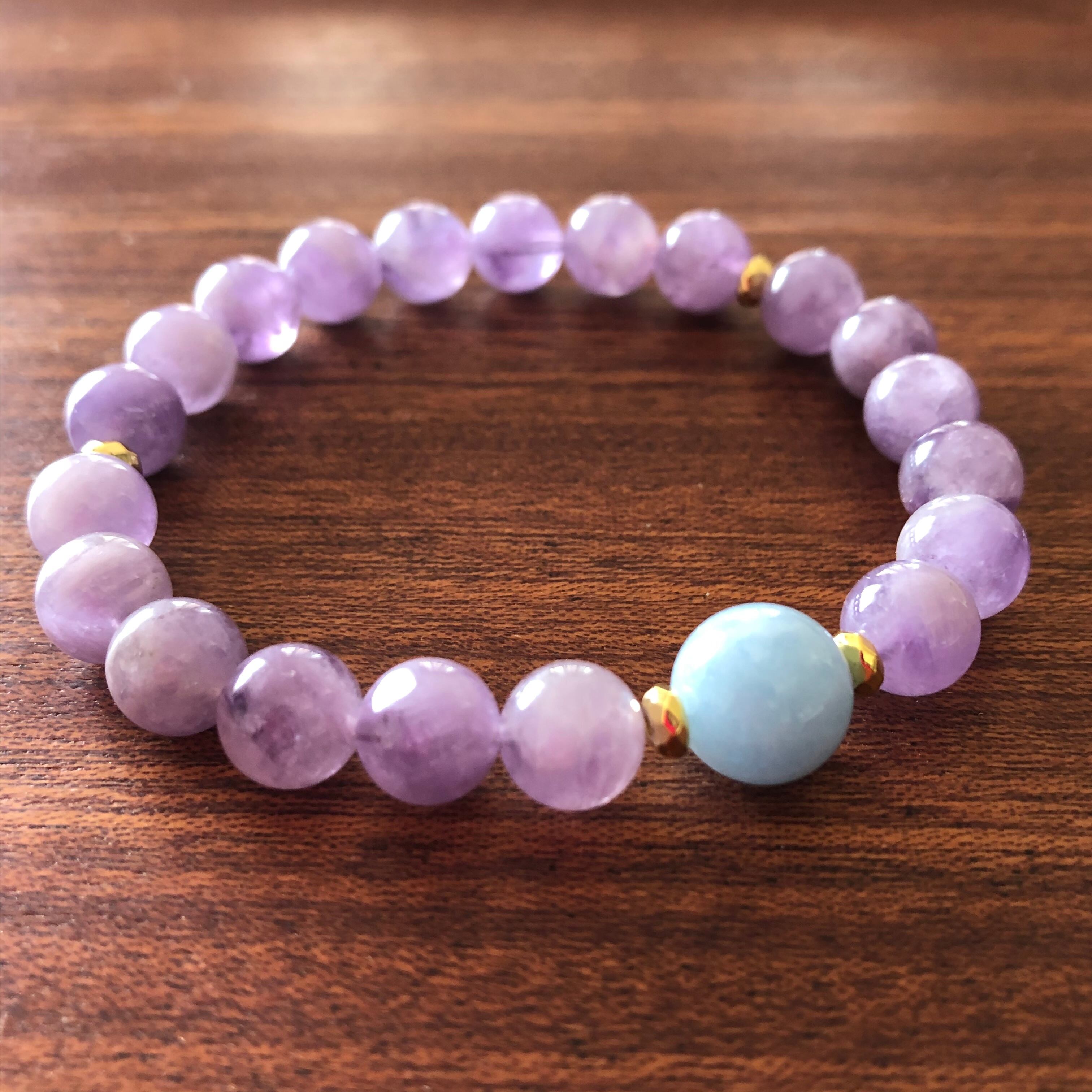 癒しと安らぎのラベンダーアメジスト・アクアマリン・ヘマタイトのブレスレットです。
