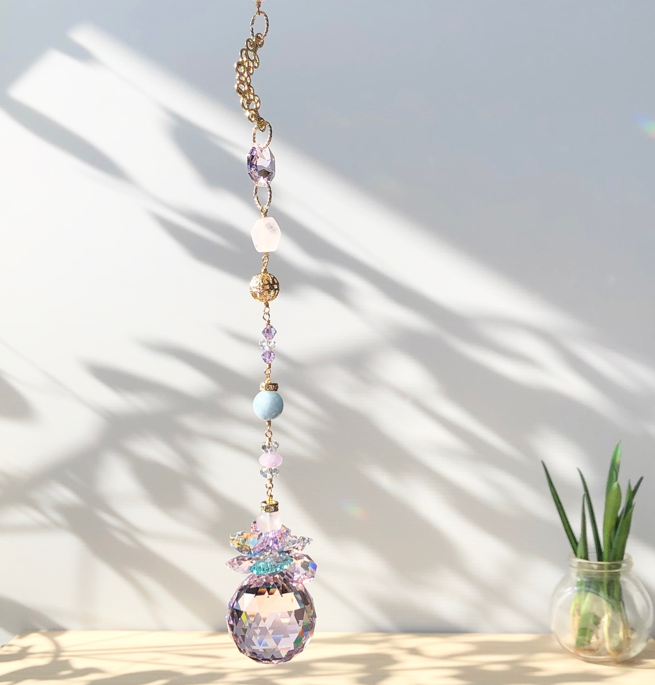 ハッピーピンクと柔らかな月と繋いで女性のための幸せサンキャッチャーとなりました。