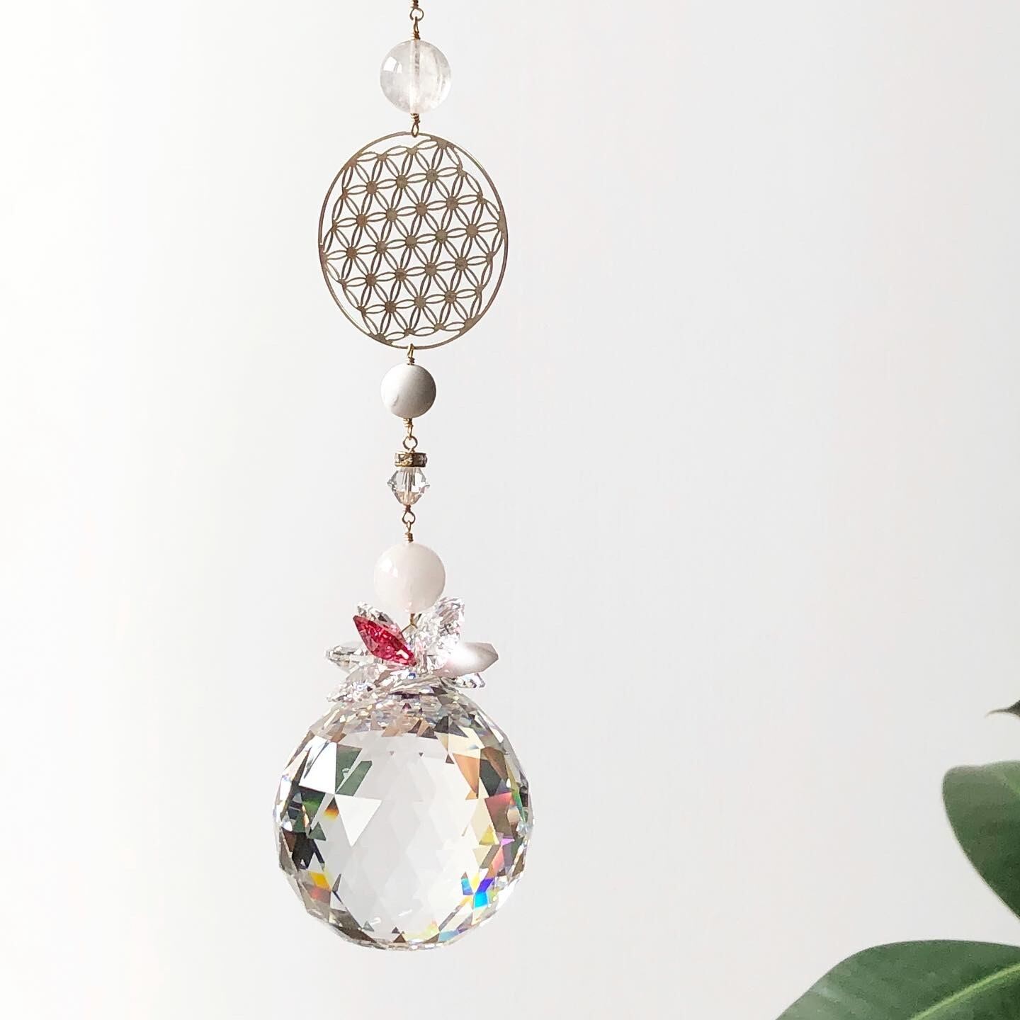 sold outパワーみなぎるフラワーオブライフとスワロフスキークリスタル5cmのサンキャッチャー