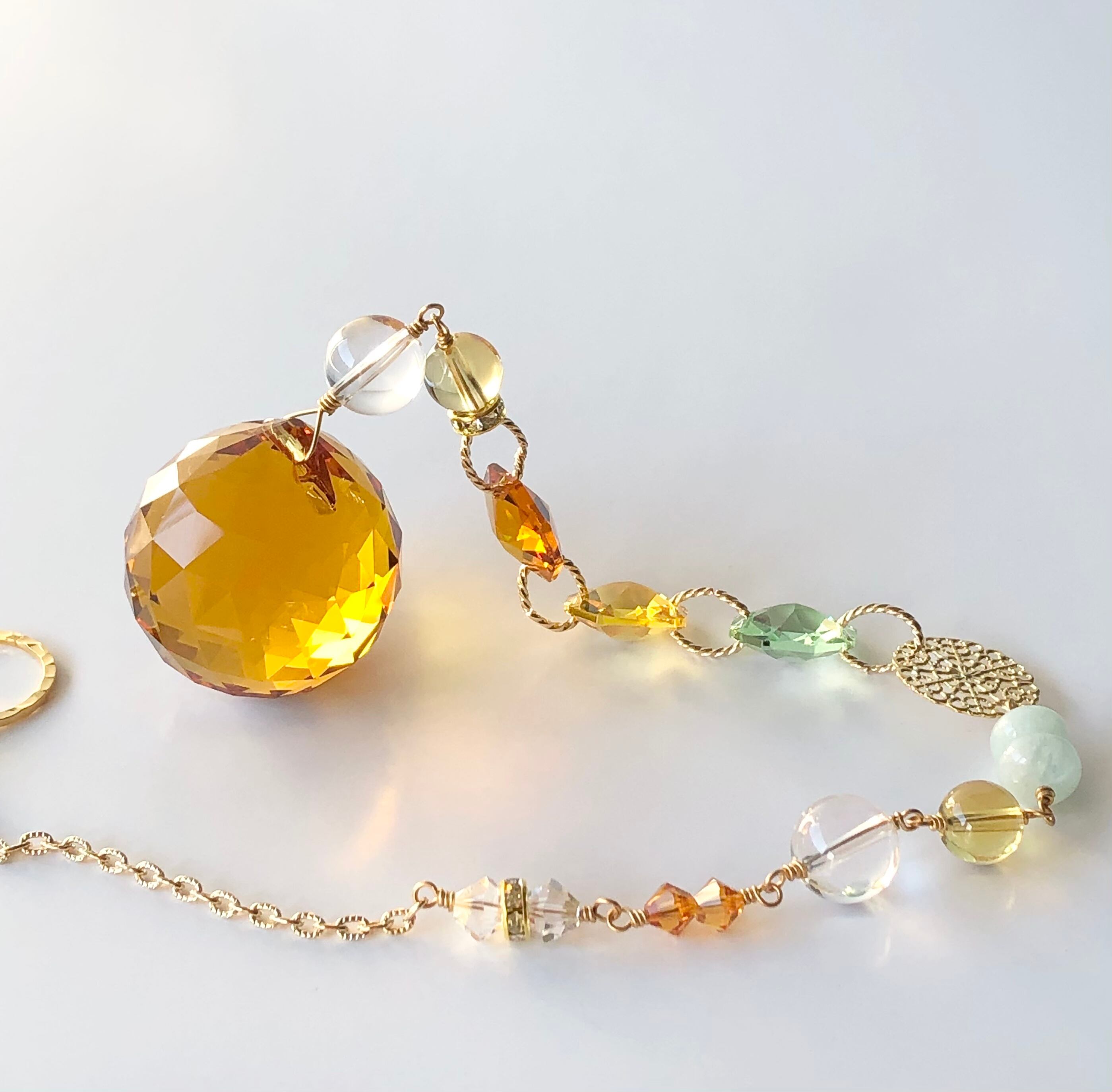 第2チャクラカラーオレンジのスワロフスキークリスタルガラストパーズ3cmを繋いだサンキャッチャーです。