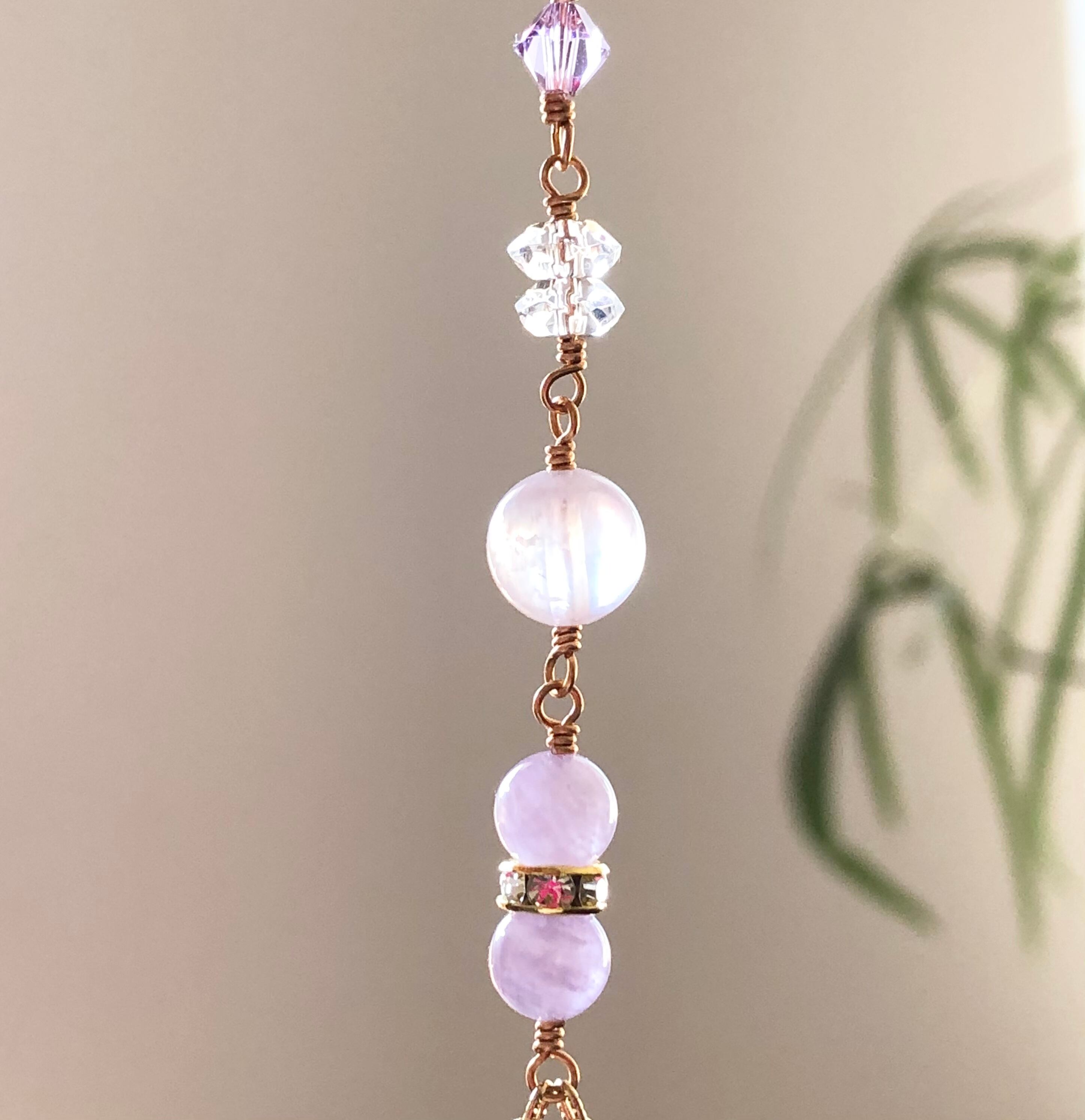 sold三日月とローズクォーツ&ラベンダーアメジストのサンキャッチャー