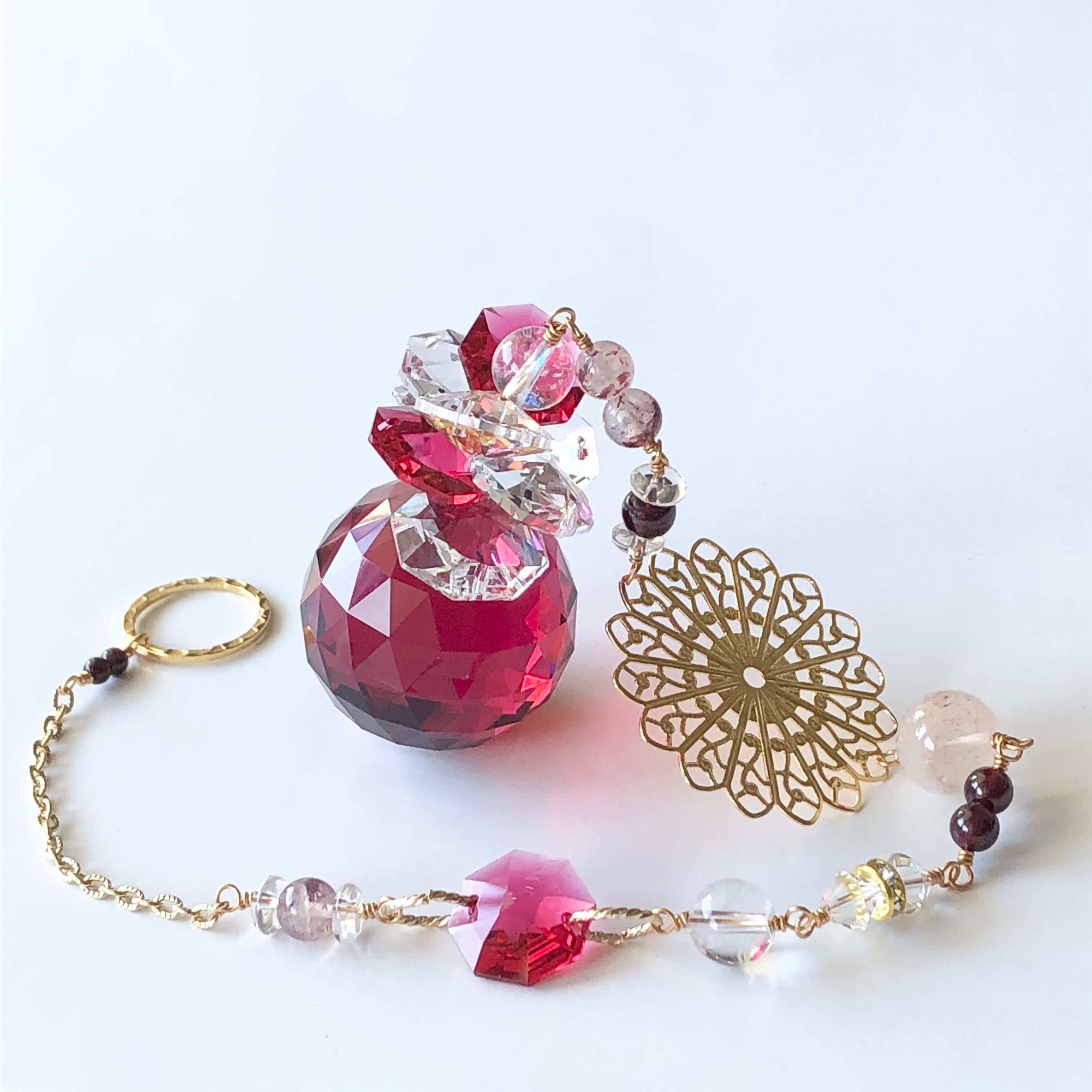 情熱の赤スワロフスキーボルドーを繋いだ愛と情熱のエネルギーにあふれたサンキャッチャーです。