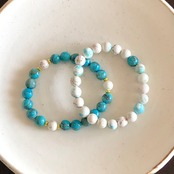 爽やかなブルーが印象的なターコイズ・ハウライト・ヘマタイトのブレスレットです。