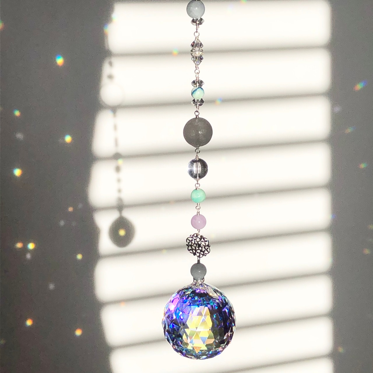 sold out幸せを呼ぶ♡天然石とスワロフスキーブルーABのサンキャッチャー
