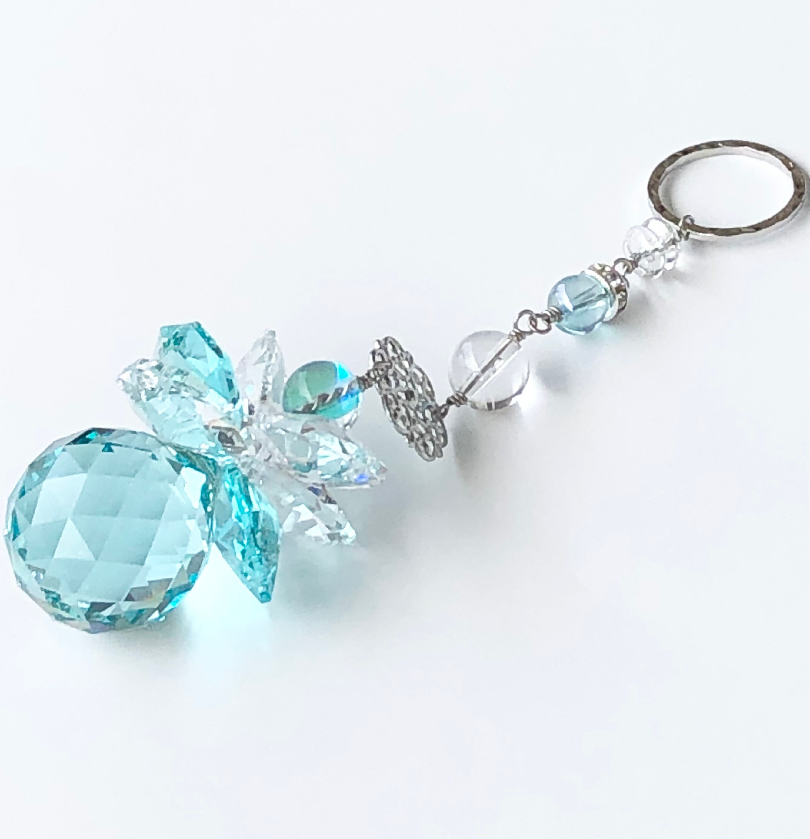 ブルーと透明のコントラストがとても綺麗なサンキャッチャーです。
