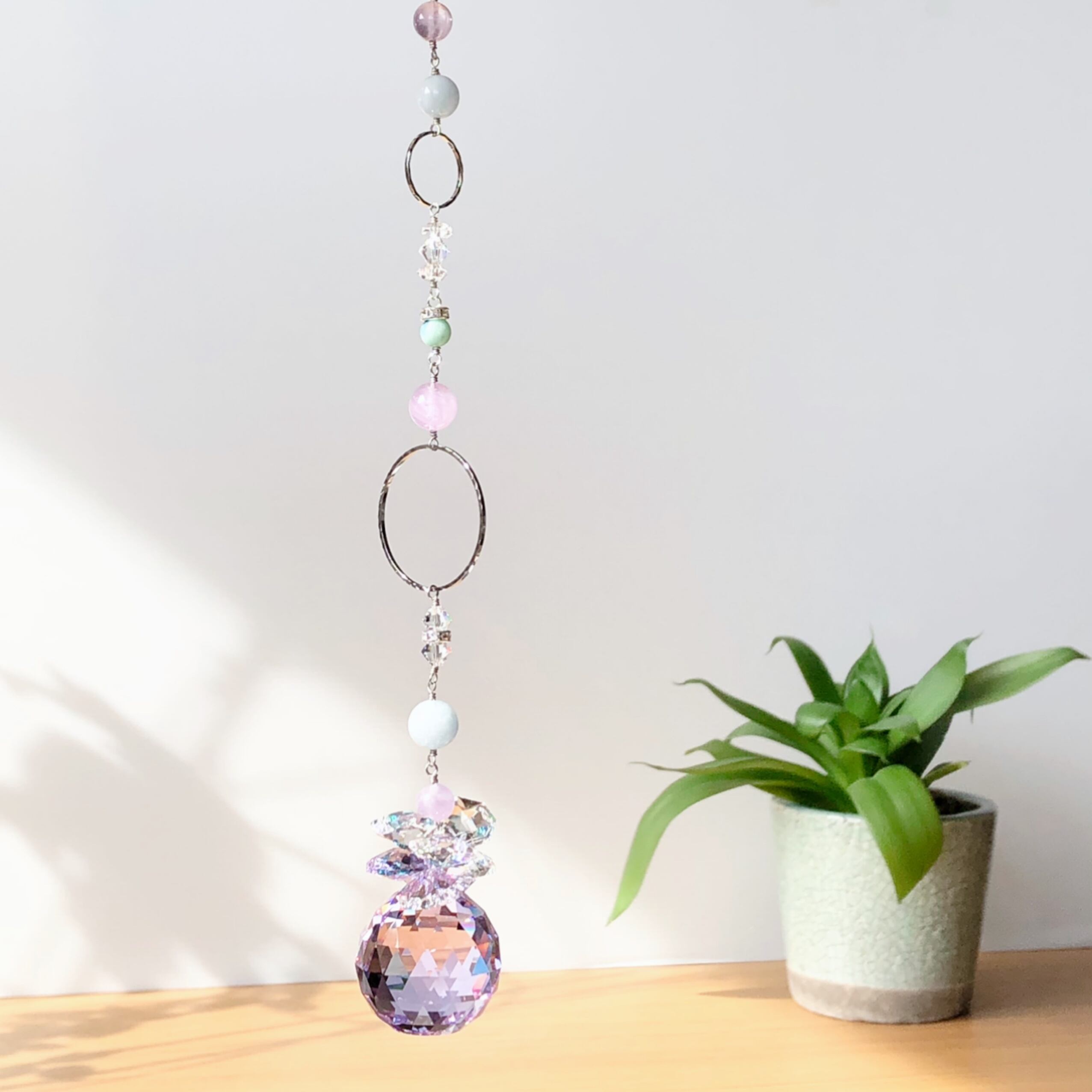 癒され幸せに♡アメジストとアクアマリンとバイオレットのサンキャッチャー