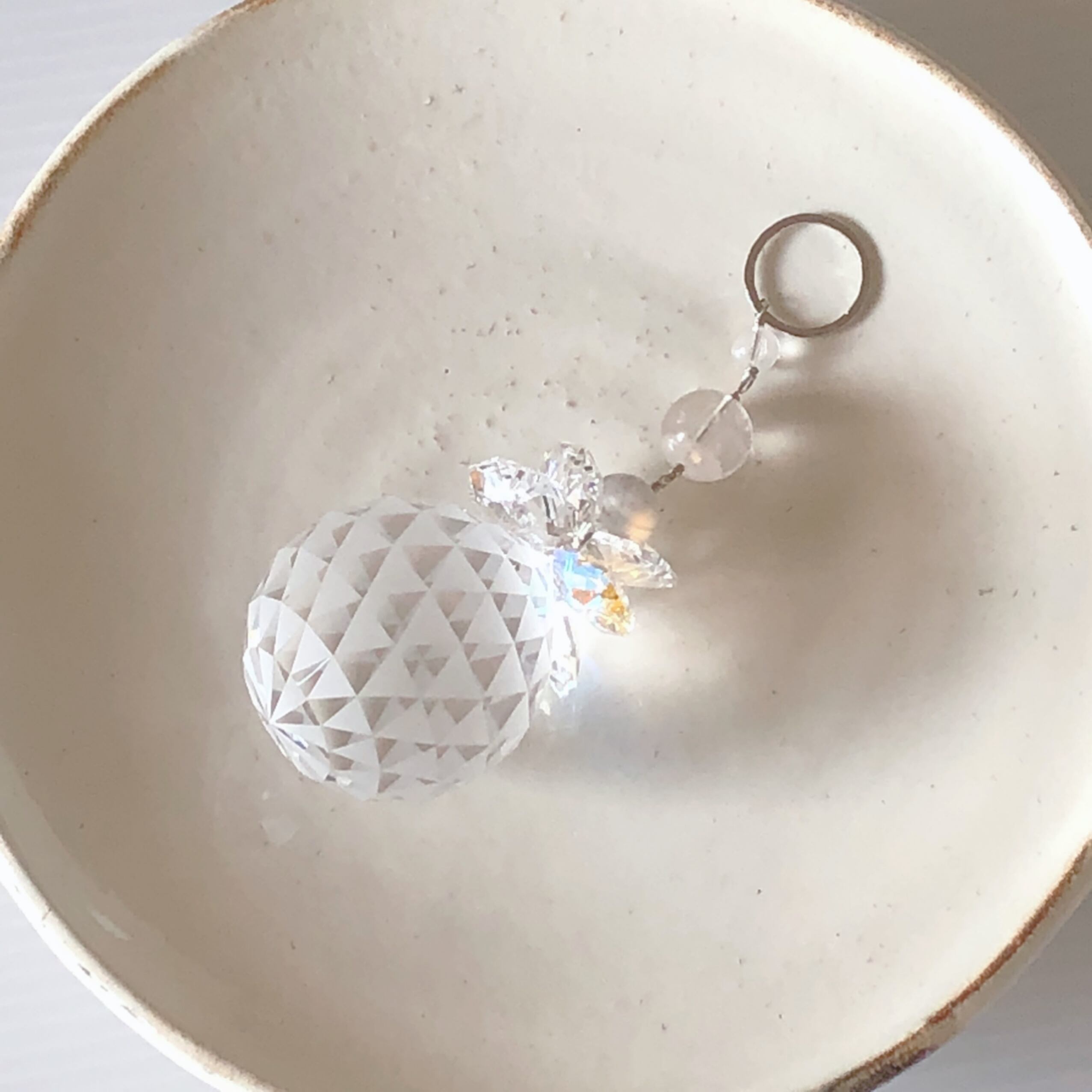 純白浄化♡ホワイトファントムクォーツとハウライトと水晶とスワロフスキークリスタルガラスフロスト4cmのサンキャッチャーです。