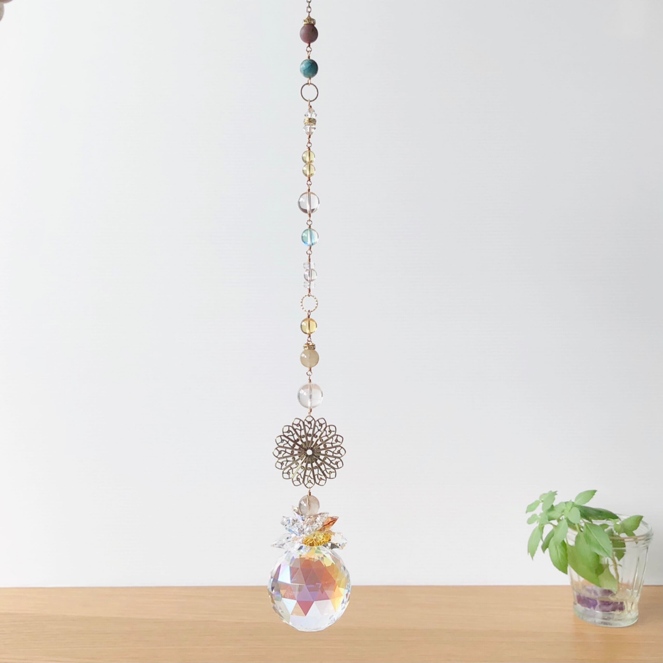 綺麗なクリスタルガラスと天然石や色の持つパワーを取り入れたFOLIUMSTELLAサンキャッチャーは太陽の当たらない時間や空間もパワーを広げて幸せを呼び込んでくれます。