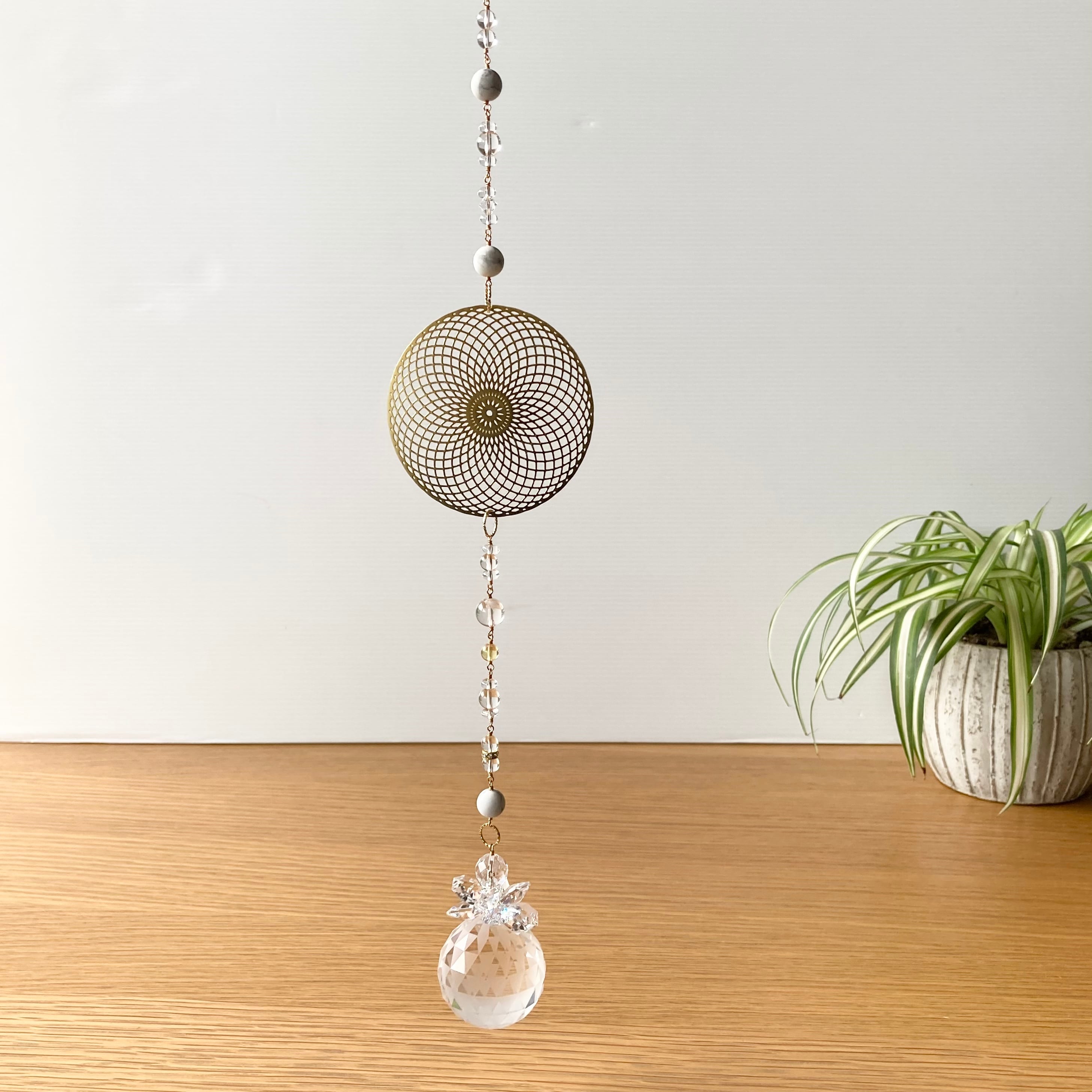 窓辺に吊るすだけで、まるでパワースポットのようにお部屋が整い、くるくると広がる光の輪が日常の疲れを和らげてくれます。