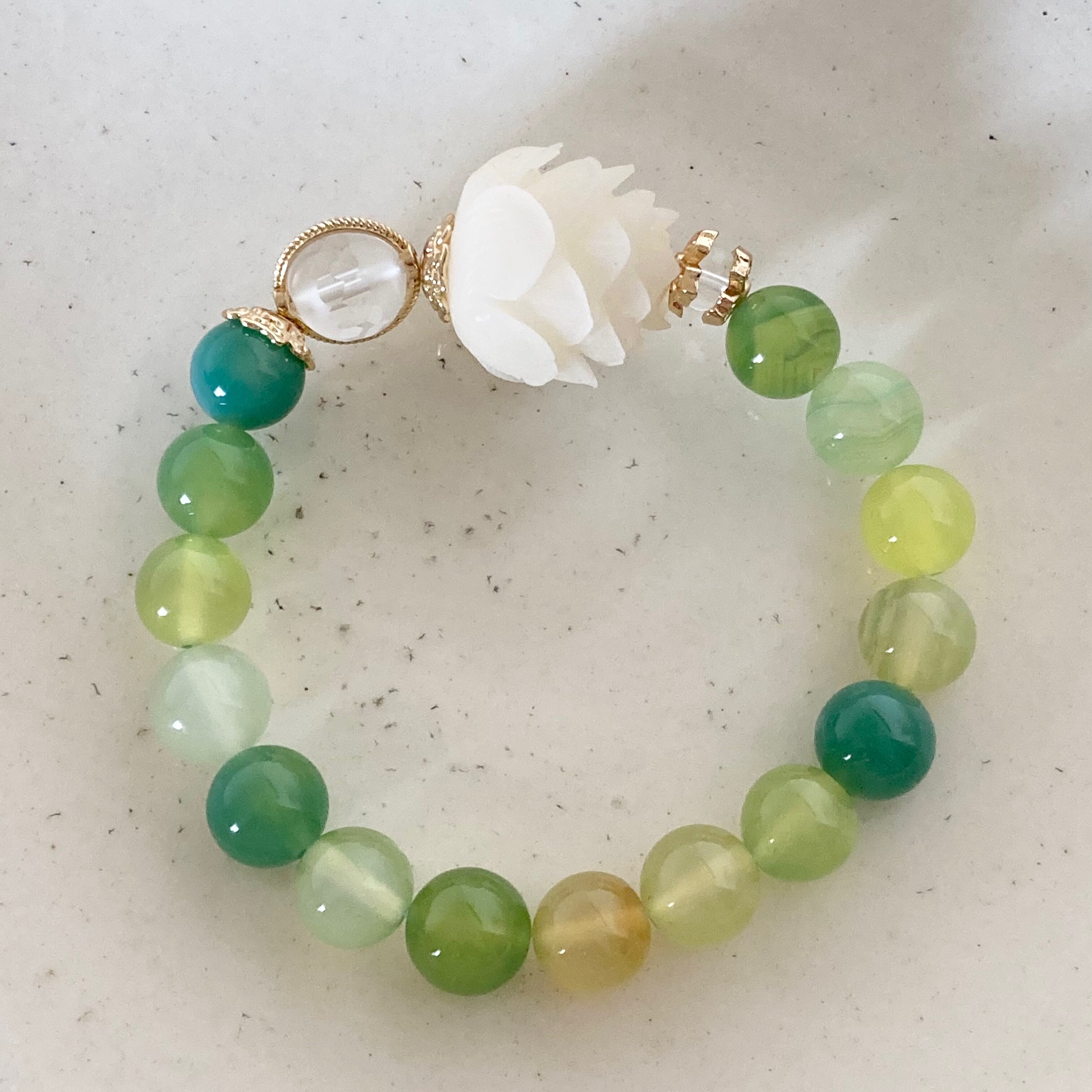 sold安らぎ心地よさで満ちる♡天然菩提樹 【蓮】とアップルアゲートと水晶とブレスレット