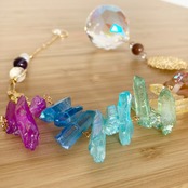 soldエネルギーアップ♡チャクラカラーのオーロラ水晶とフォシルコーラルと宇宙とスワロフスキーブルーABのサンキャッチャー