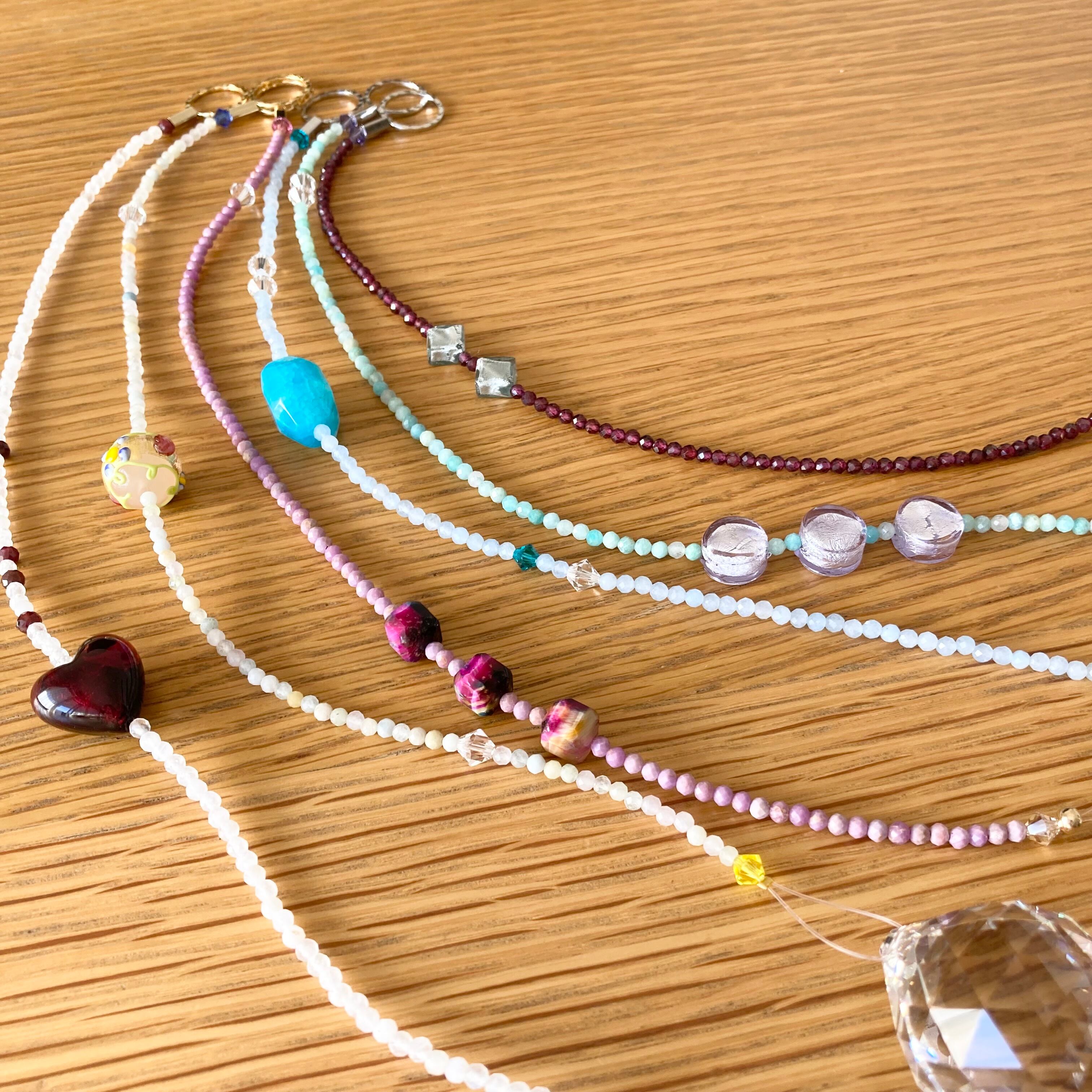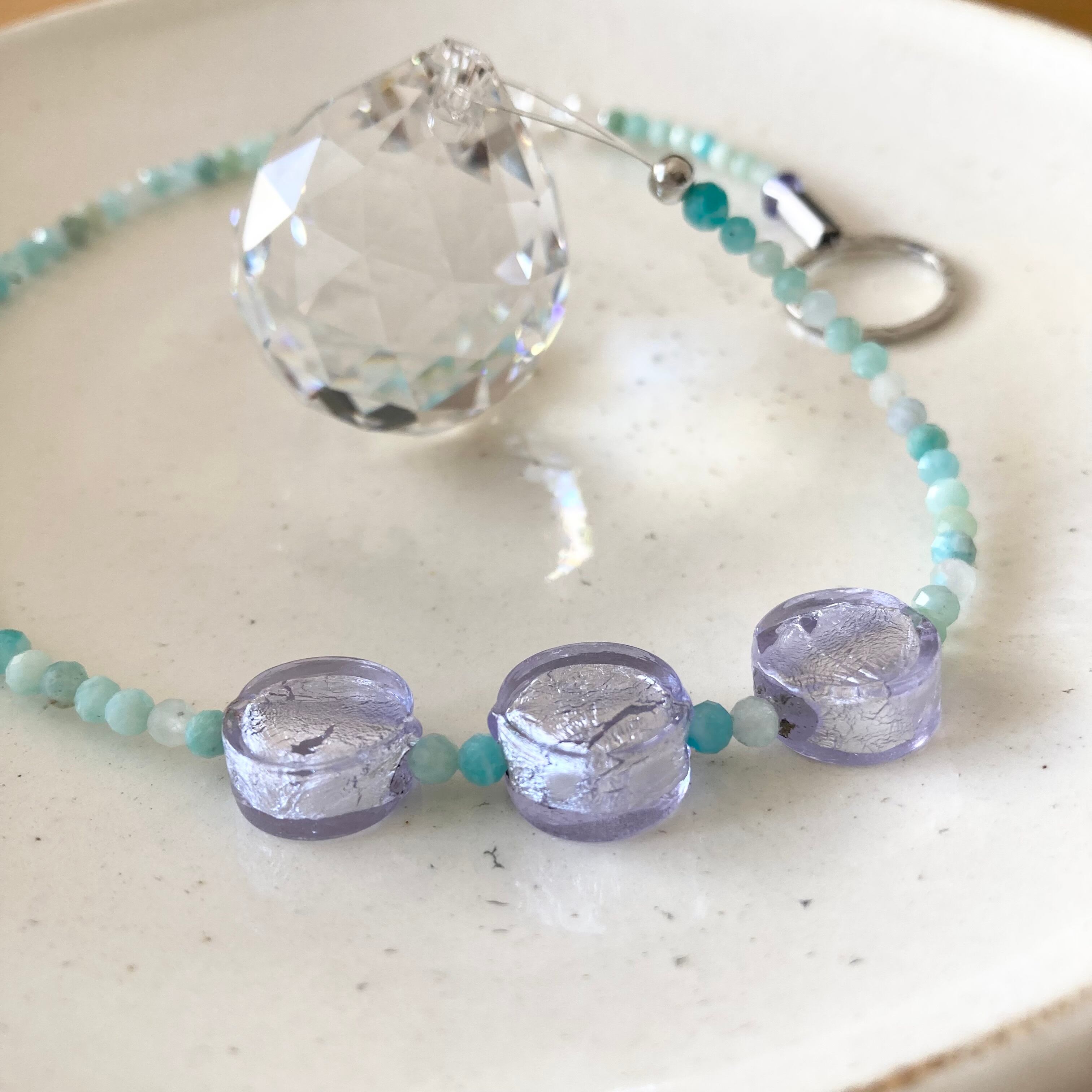 sold願いをいっぱい叶えていく♡アマゾナイト・丸いベネチアンビーズとプレシオサクリスタルのサンキャッチャー