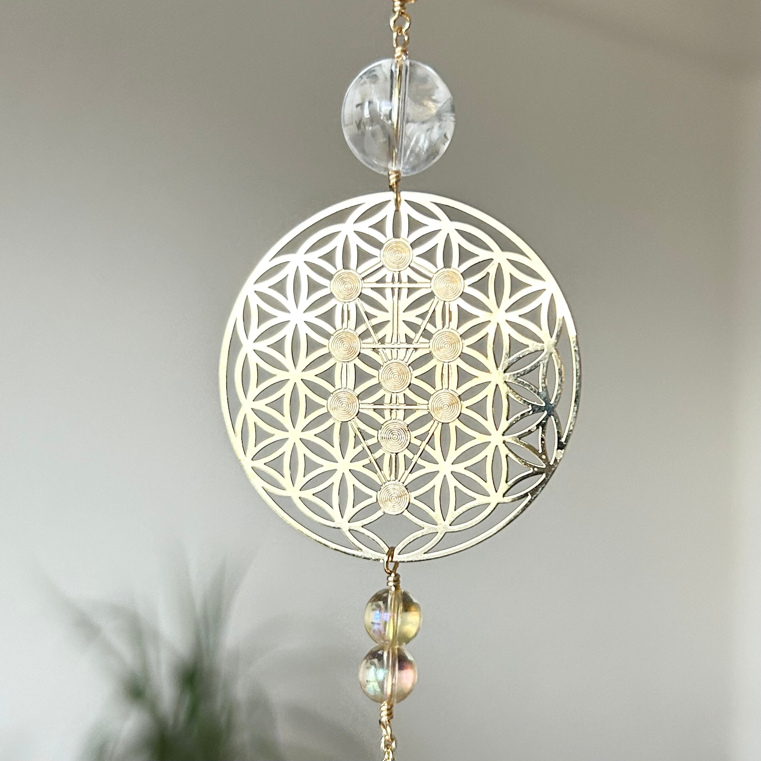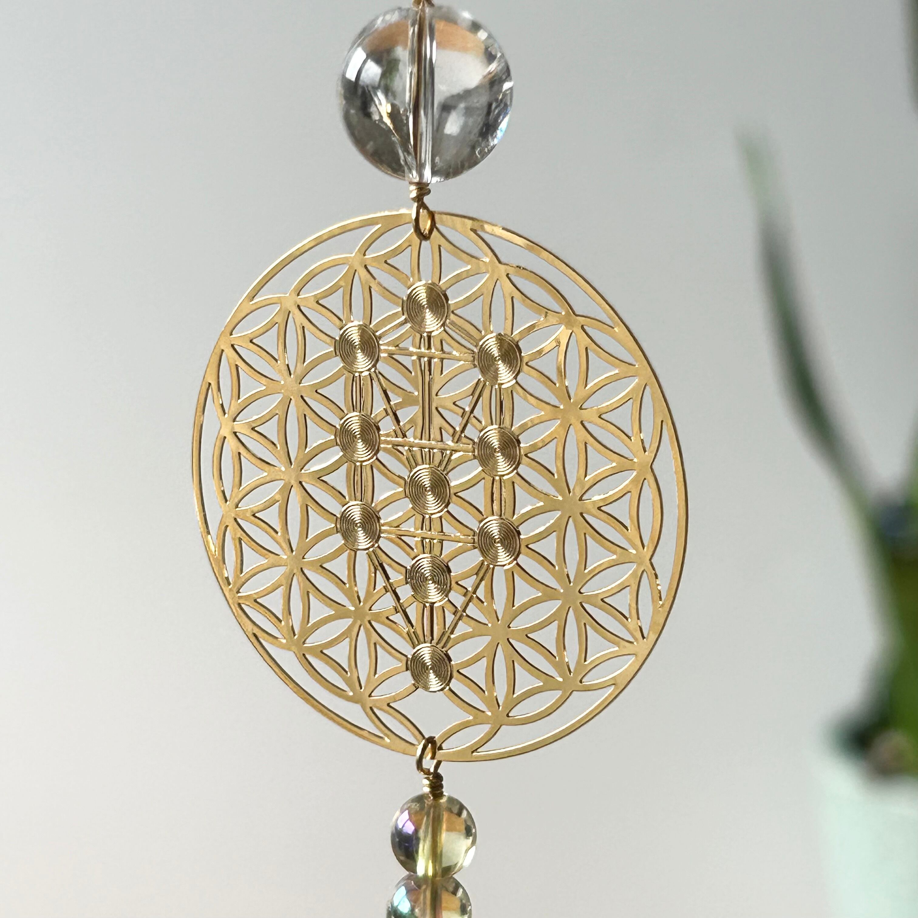唯一無二の輝きと存在感♡神聖幾何学模様セフィロトの樹とスワロフスキークリスタルひし形のサンキャッチャー