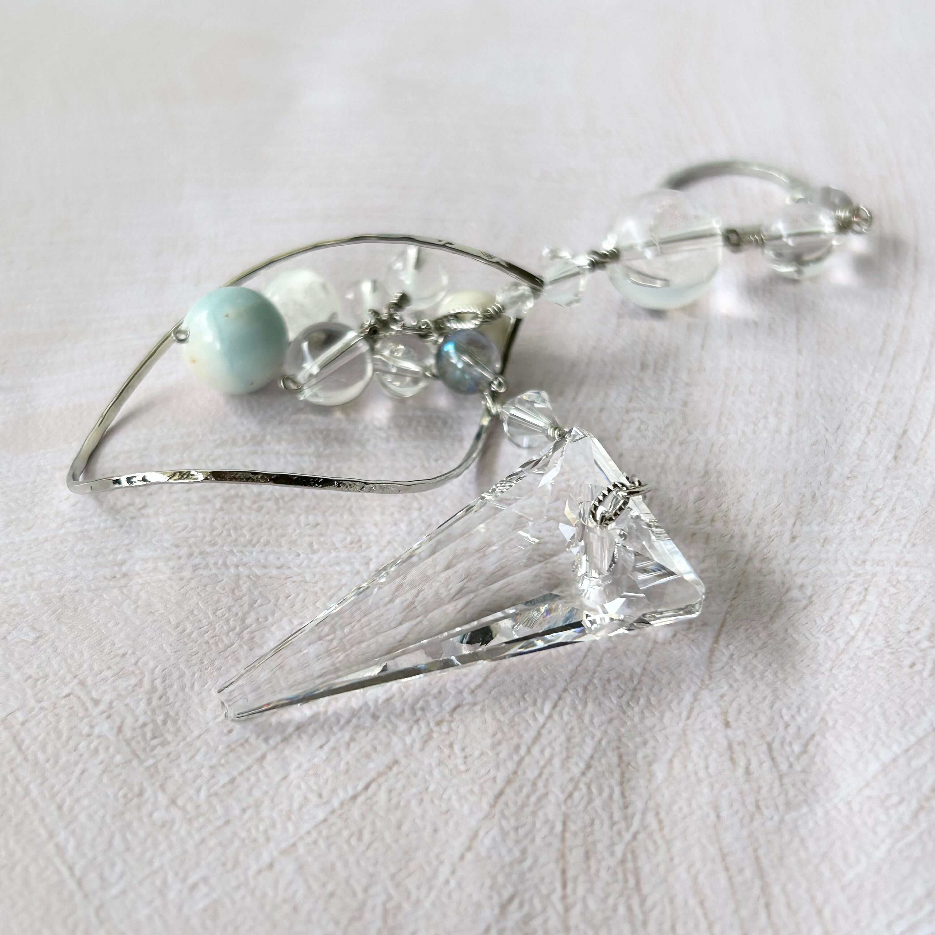 スワロフスキークリスタルガラス二等辺三角形4cmを繋いだサンキャッチャーです。